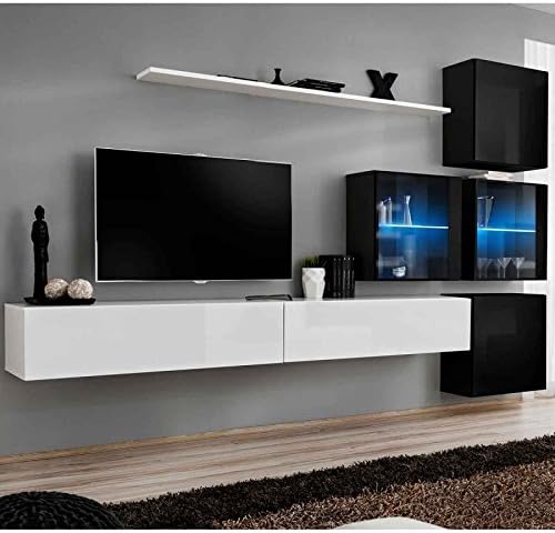 Meuble tv mural noir. Home innovation ensemble de meubles salon unite murale meuble bas tv salle a manger ensemble de sejour contemporain avec ilumination led blanc mate et noir laque dimensions. Ce meuble tv mural avec 14 rangements fait le tour de la question et de la niche qui accueille votre jolie tv led design en actrice principalemagique. Les pieds en metal offrent un contraste tres apprecie avec les meubles tv en bois clair.